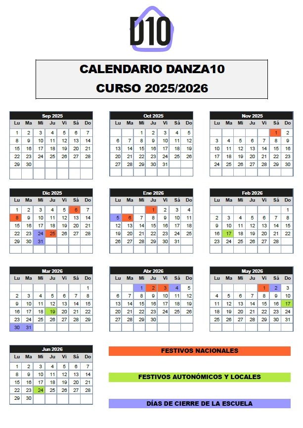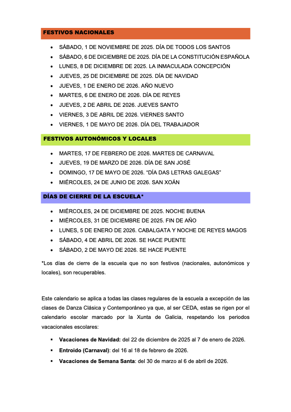 cALENDARIO DE FESTIVOS Y CIERRE